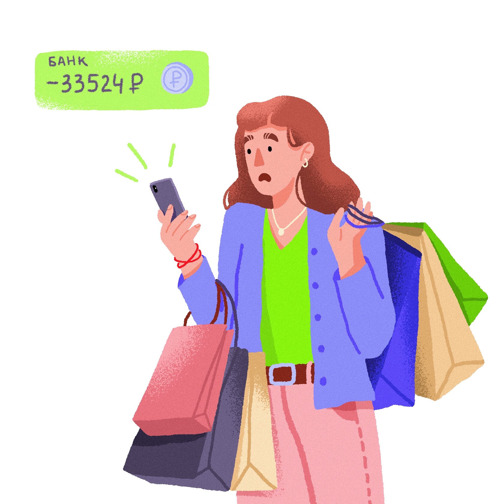 Катя знает, что при оплате наличными она бы тратила меньше, потому что с физическими деньгами ей сложнее расстаться. Но она забывает брать с собой наличные.