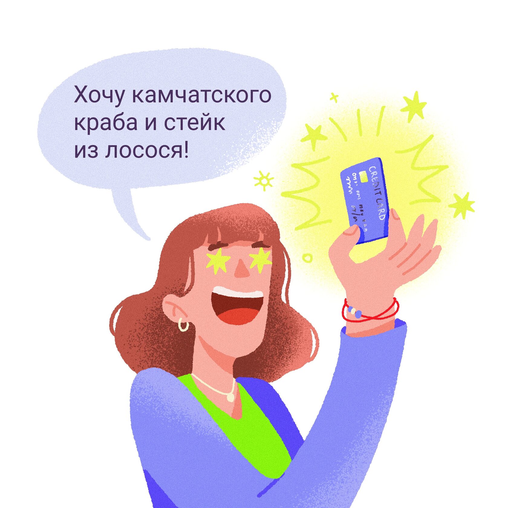 Катя ни в чём себе не отказывает: ходит по магазинам, заказывает еду на дом, развлекается с друзьями. И за всё платит кредитной картой.