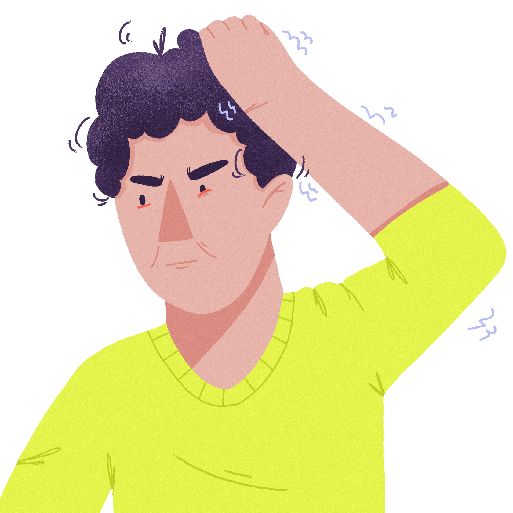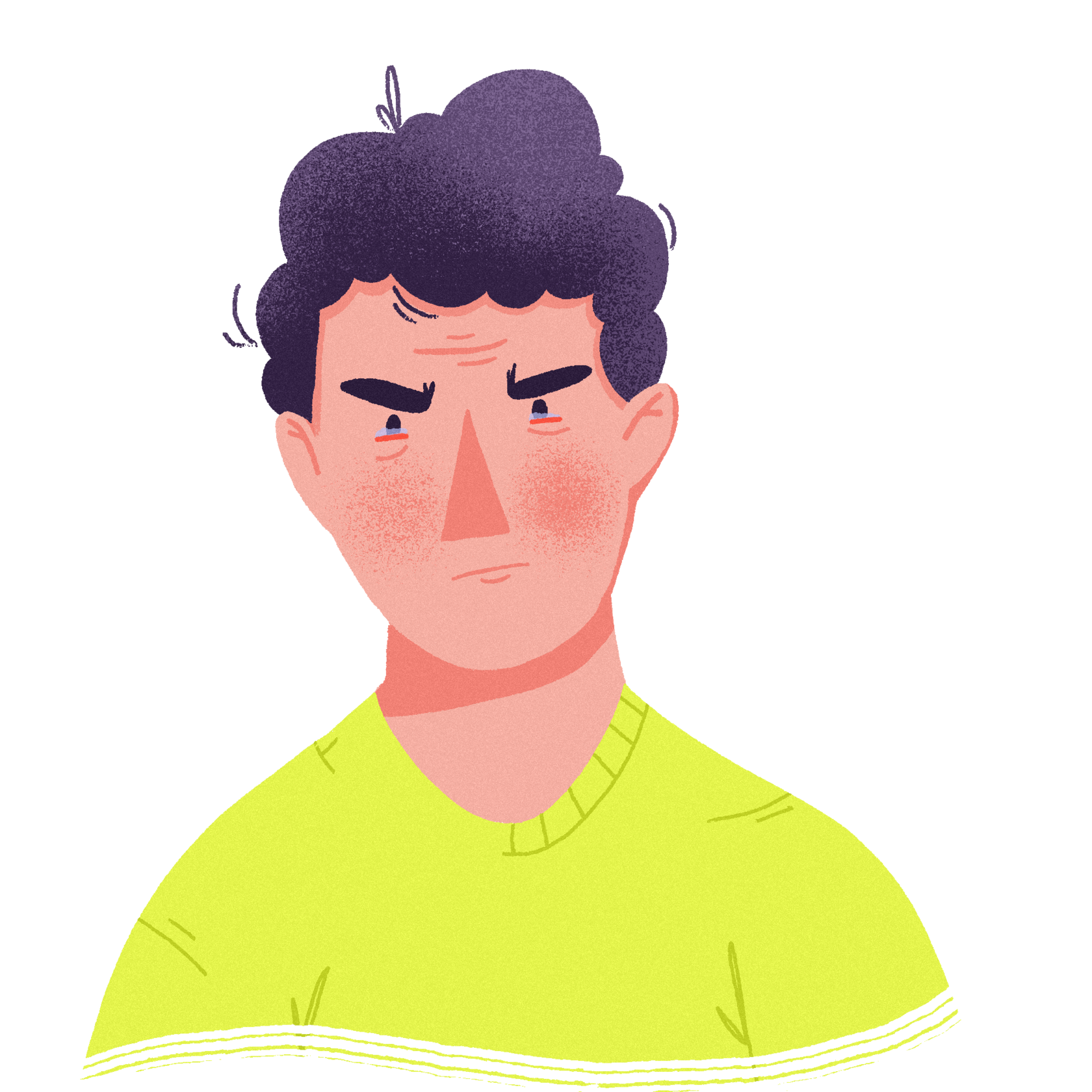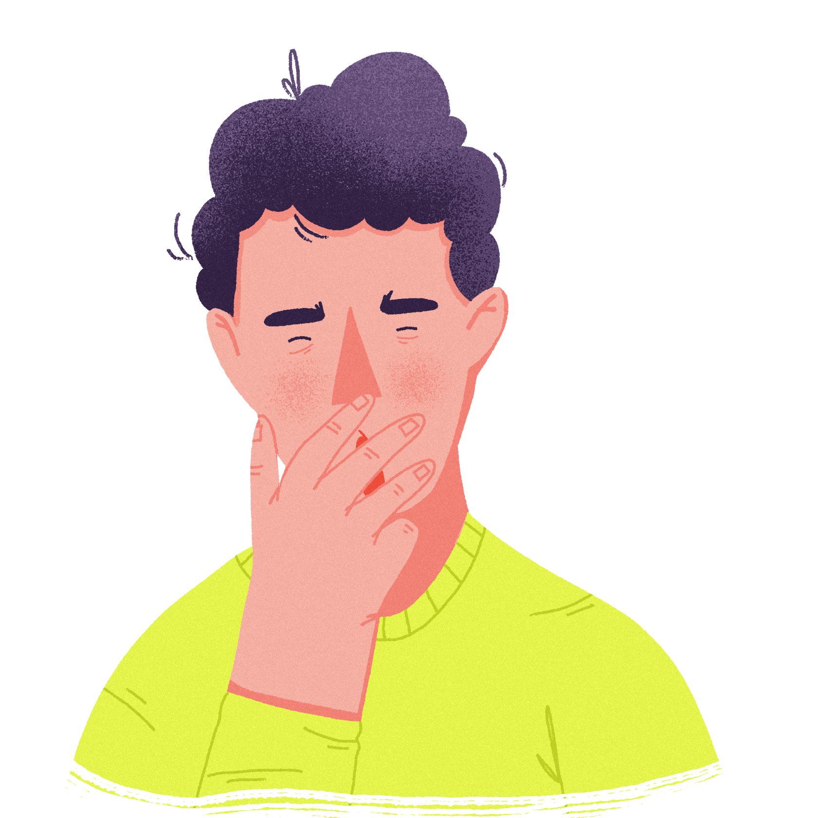 Буквально каждая вещь кажется Диме раздражающей, поэтому он нервничает и не может работать. Проявляются такие симптомы, как боли в желудке, диарея, тошнота, головокружение. Конечно, это всё сказывается на его лице — глаза режет, поэтому текут слёзы, кожа вокруг глаз вся красная.