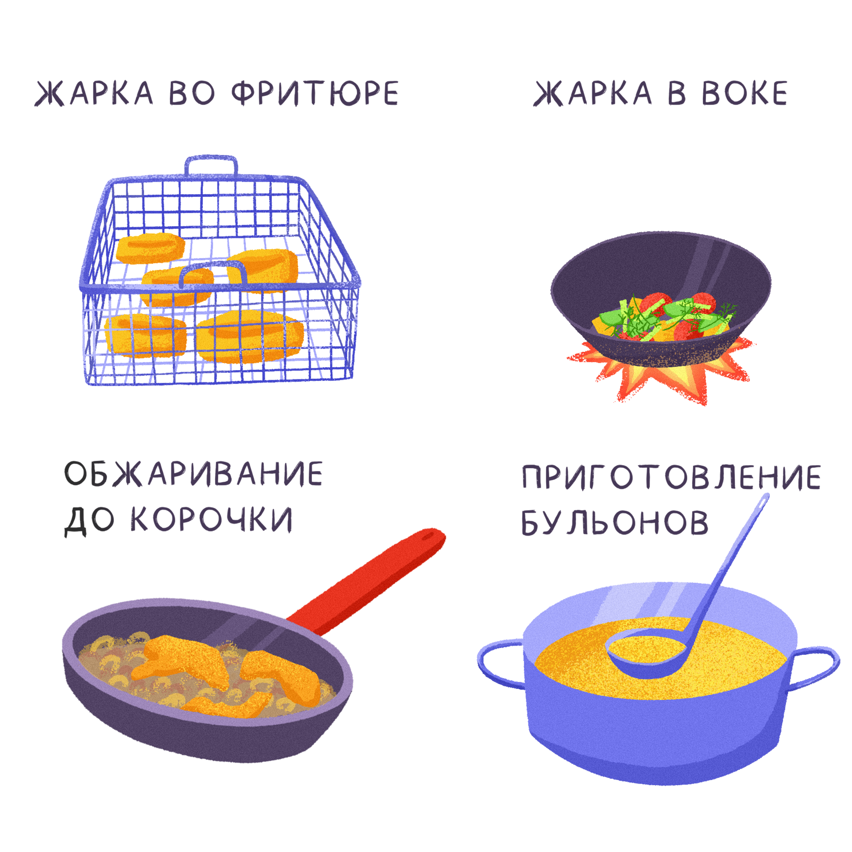 - Равномернее распределяет тепло — полезно для жарки и обжаривания.