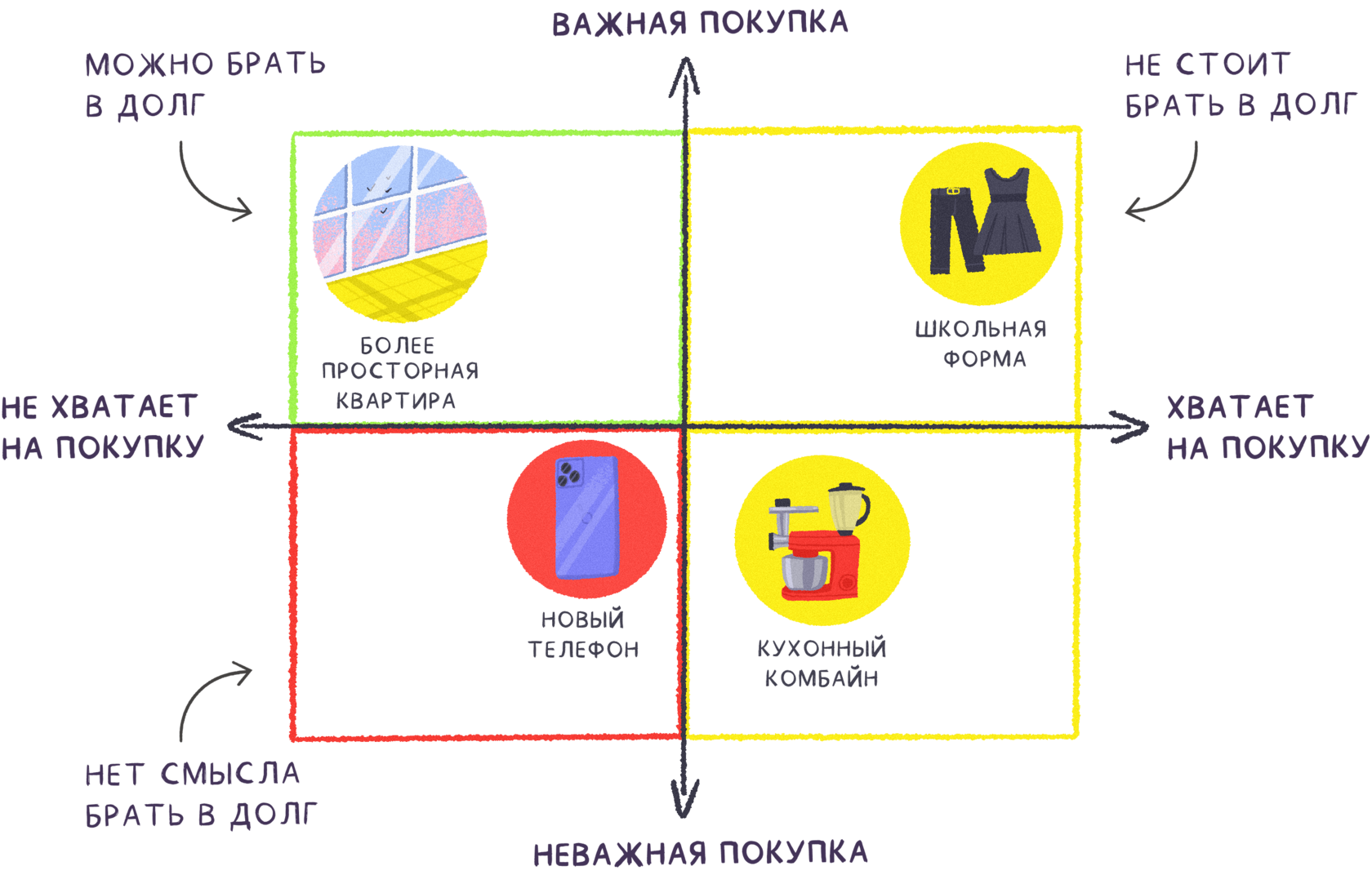 Ликвидность — то, насколько быстро можно продать товар по цене, близкой к рыночной. В долг стоит брать товары, которые можно быстро «превратить» в деньги. Это поможет застраховать себя в будущем от неприятностей.