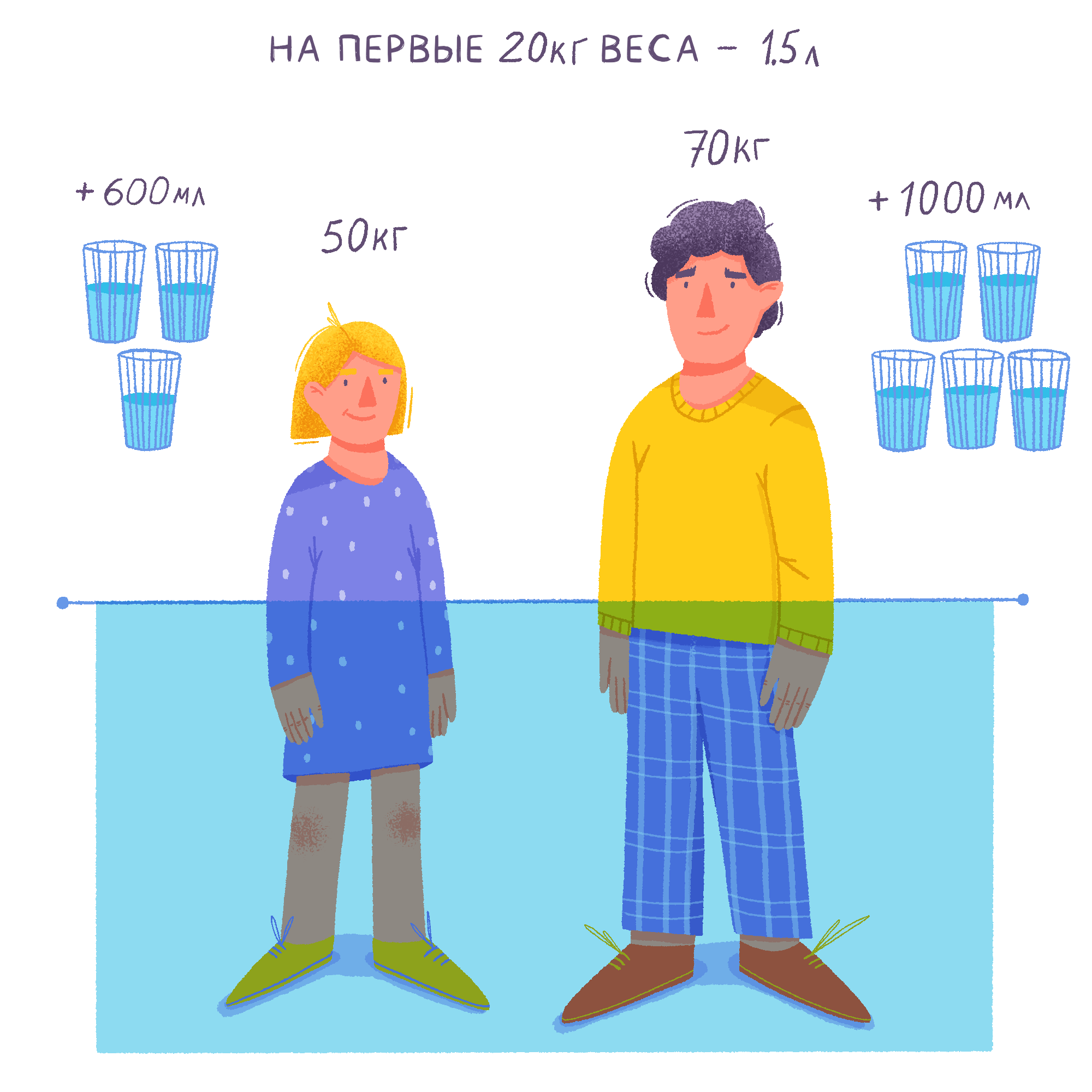 На тренировках вода в организме расходуется быстрее, чем обычно, из-за потоотделения и перегрева. Тогда стоит пить больше питьевой нормы на 500−600 мл.