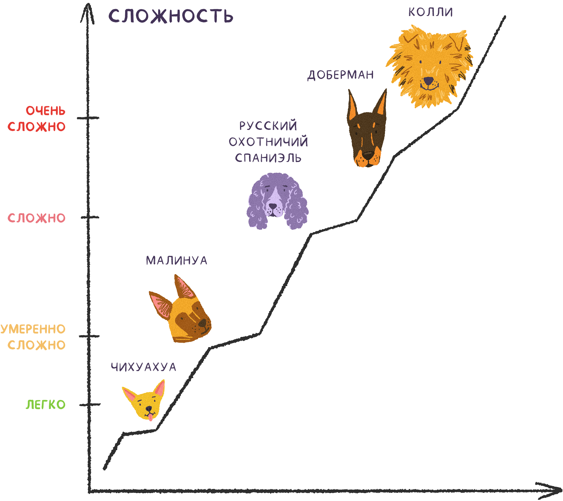 Подумайте, готовы ли вы заниматься дрессировкой. Занятия с кинологом пойдут на пользу любой собаке, а для крупных они обязательны. Если это ваша первая собака и вы не уверены, что сможете уделять её «образованию» достаточно внимания и сил, лучше обращать внимание на породы, которые легче поддаются дрессировке: овчарки, корги, пудель, ретриверы, спаниели.
