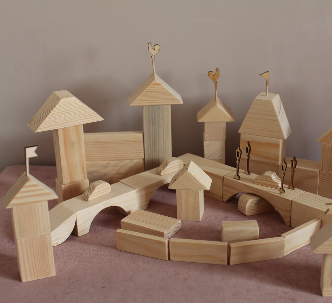 ➕ Развивает интеллект и творческие способности — деревянные блоки можно разукрашивать и строить из них дома.