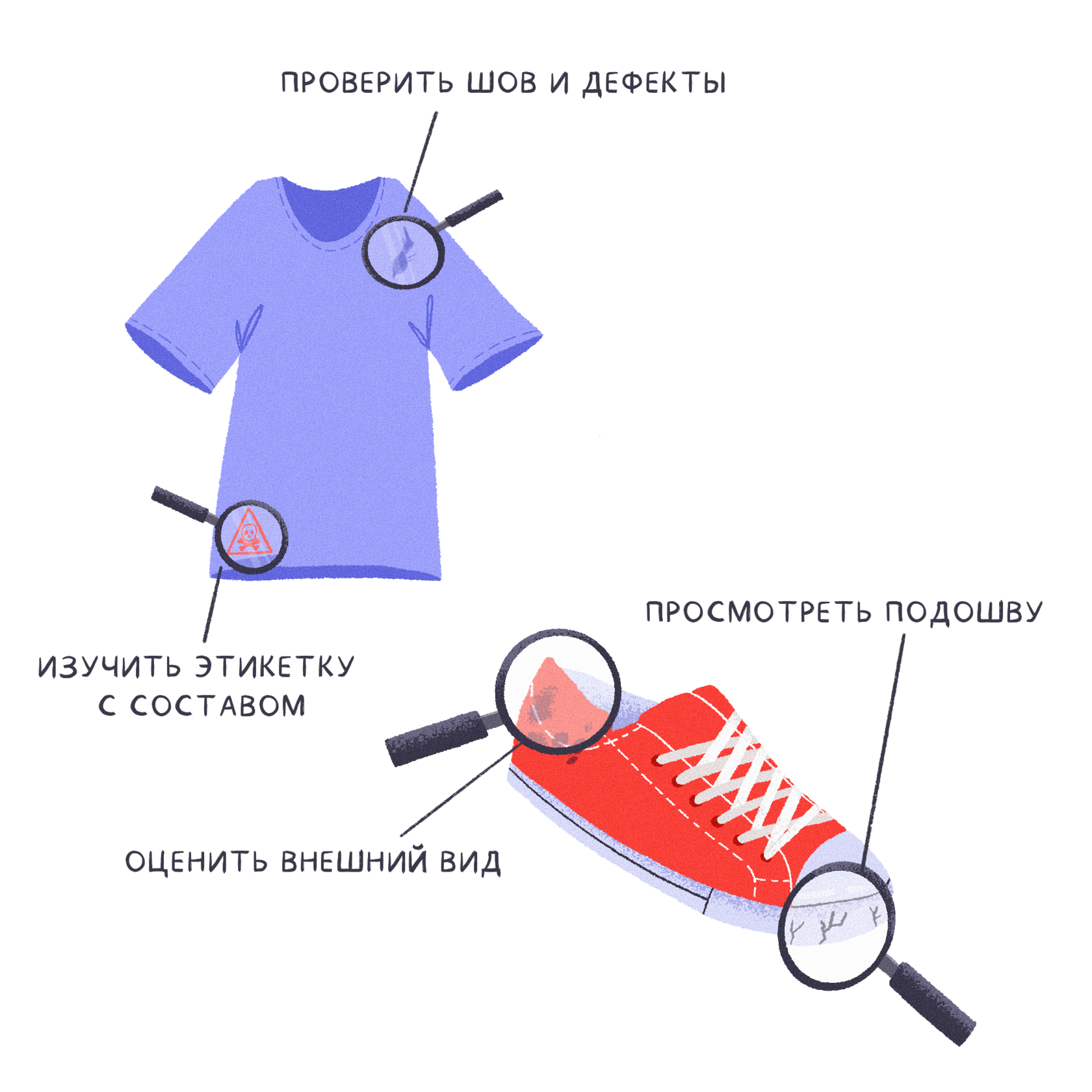Проверить шов, дефекты и плотность. Хороший шов на одежде или обуви должен быть ровным, без видимых ниток или разрывов, иначе скоро он может разойтись. Также осмотреть ткань на дефекты: дырочки, потёртости и истончения. А чтобы проверить плотность, нужно поднести её к свету. Если ткань легко просвечивается, она может быть не очень прочной.