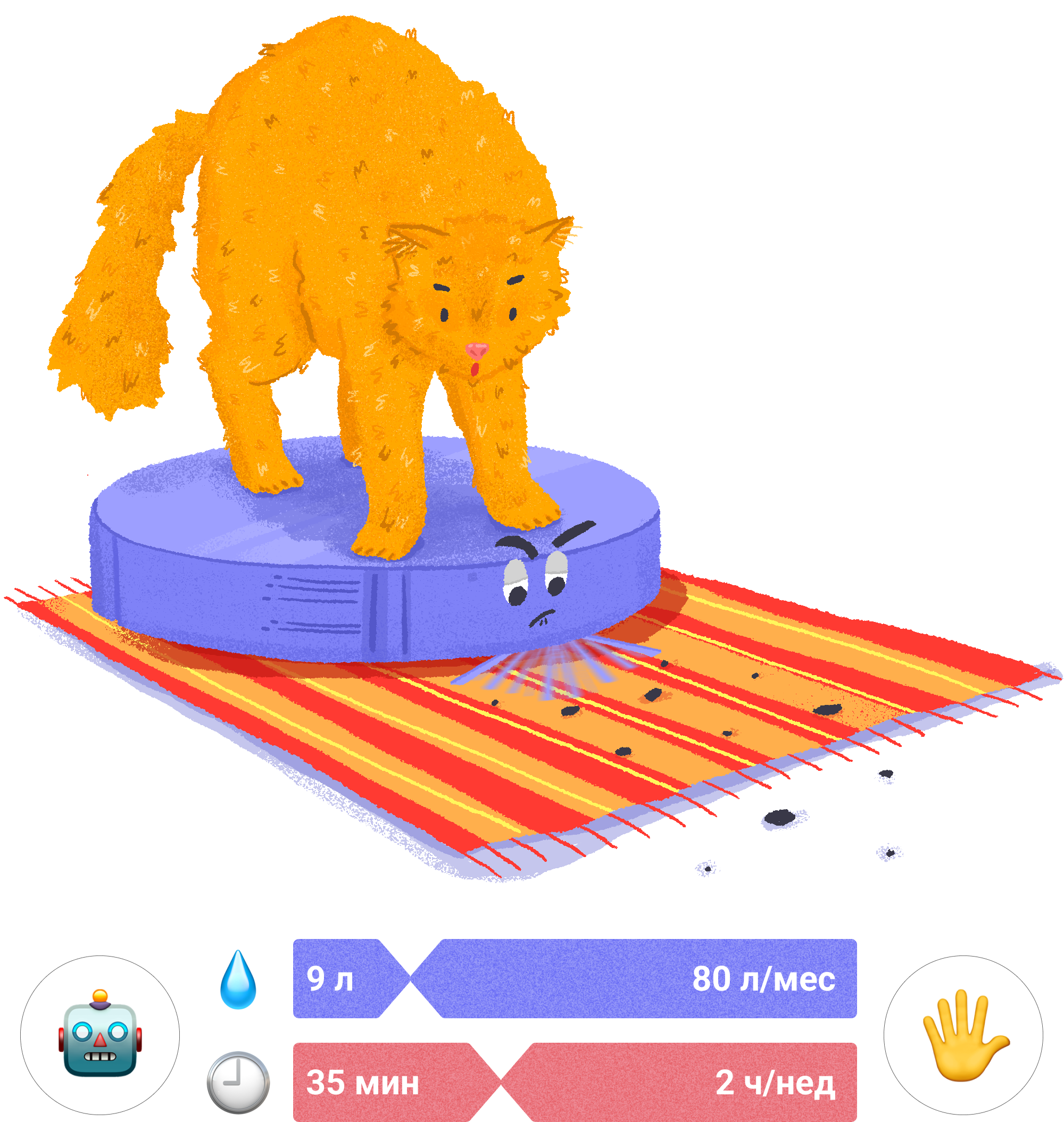 Если использовать пароочиститель и сравнивать его с обычными методами влажной уборки, то можно сэкономить до 80% воды. Так, из 1 л воды в резервуаре пароочистителя получается 1 500−1700 л пара, а этого хватает для полноценной уборки около 60 м². Вряд ли 1 л воды в ведре хватило бы для уборки такой площади.