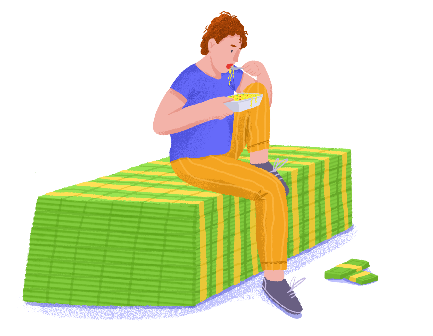 Как это работает в жизни. Представим Вову. Он зарабатывает те же 60 000 ₽ и за месяц тратит их до копейки. В день зарплаты заказывает роллы на ужин. В будни обедает в кафе, а не в столовой. У Вовы всегда последняя модель телефона, а в квартире — десятки ненужных гаджетов.